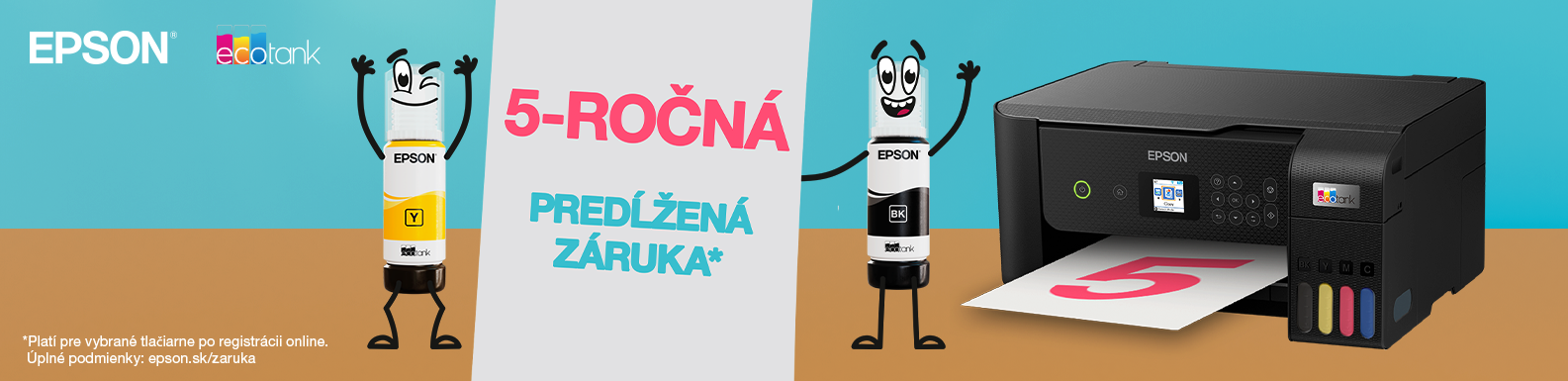 Kúpte si vybranú tlačiareň Epson v období od 1.4.2025 do 31.3.2026, zaregistrujte sa a získajte 5-ročnú predĺženú záruku Epson. Úplné informácie vrátane registrácie nájdete na stránke epson.sk/zaruka