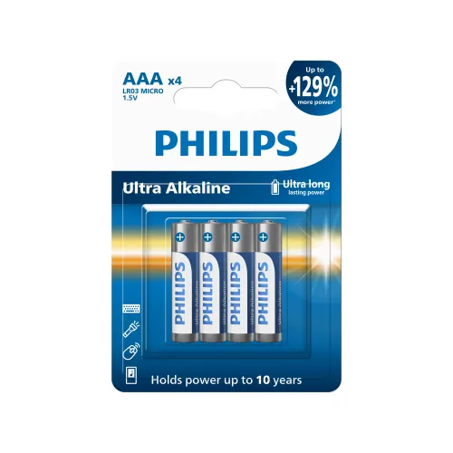 Philips alkalická batéria AAA, 4-pack, Ultra Alkaline, (LR03E4B/10) Produkty batérie dnes zakúpili 3 zákazníci Práve prezerá 2 zákazníci Philips alkalická batéria AAA, 4-pack, Ultra Alkaline, (LR03E4B/10) 1,67 € vrátane DPH 1,38 € bez DPH Skladom > 9 ks , 26.02.2026 u vás alebo na výdajnom mieste Zobraziť termín doručenia a ceny dopravy − Množství + Pridať do košíka Nákup po telefóne +421 948 170 714